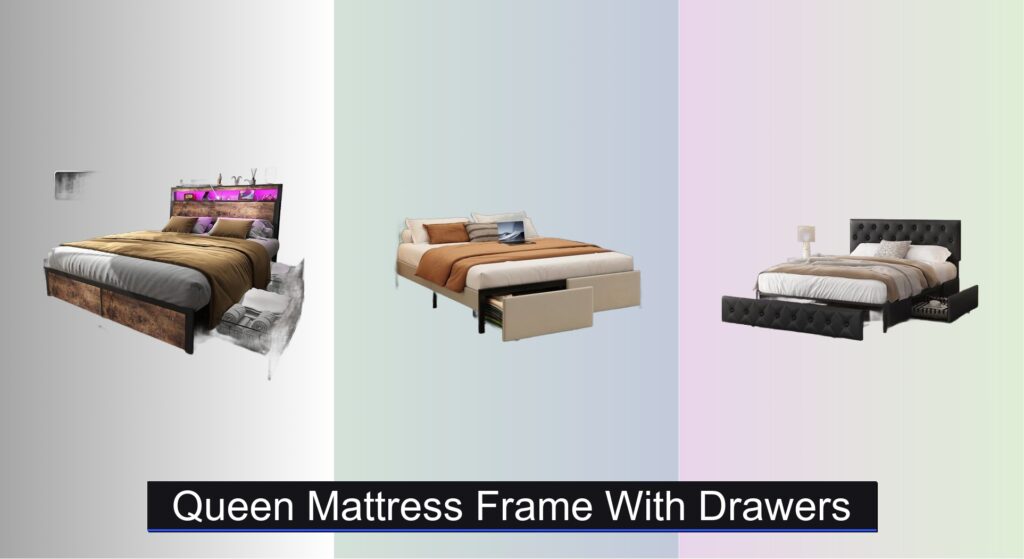 We analyzed over 50 models, weighing customer feedback, material quality, weight capacity, and real-world performance to identify the best options. Our top picks prioritize heavy-duty steel slats, smooth-gliding drawers, and thoughtful features like integrated charging ports or adjustable headboards. Whether you need maximum storage or a sleek upholstered look, these frames deliver lasting value. Keep reading to discover the best queen mattress frame with drawers for your bedroom.